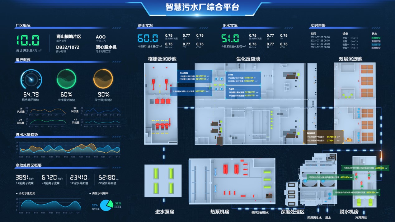 整合分散、无序、多介质的各类生产运行数据,建立污水厂生产运行数据信息化管理体系和快速、准确、高效的数据共享与交换机制,实现以污水厂生产运行全过程管理为核心,详尽记录企业生产运行过程中的工艺运行、水质化验、设备运行、设备状态、能源消耗等数据,形成完整的污水厂生产运行管理信息化模式。